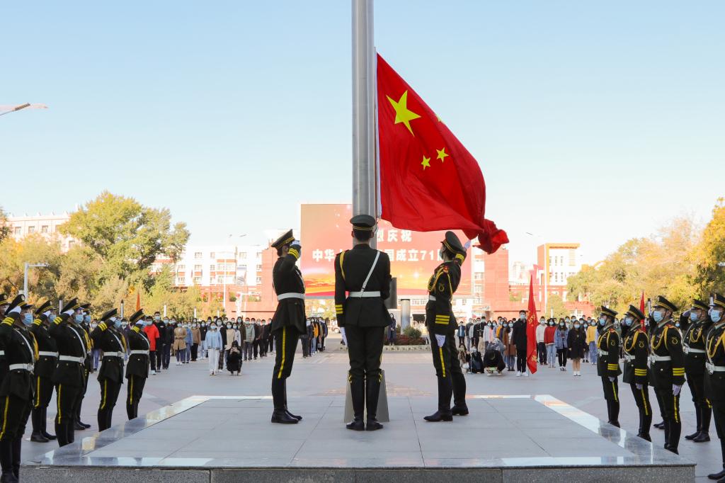 为隆重庆祝中华人民共和国成立71周年,深入学习贯彻第三次中央新疆工作座谈会精神,激发广大师生爱国情怀,用青春向祖国致敬,10月1日清晨,我校在三个校区同时举行升国旗仪式,为伟大祖国献上最诚挚的祝福。