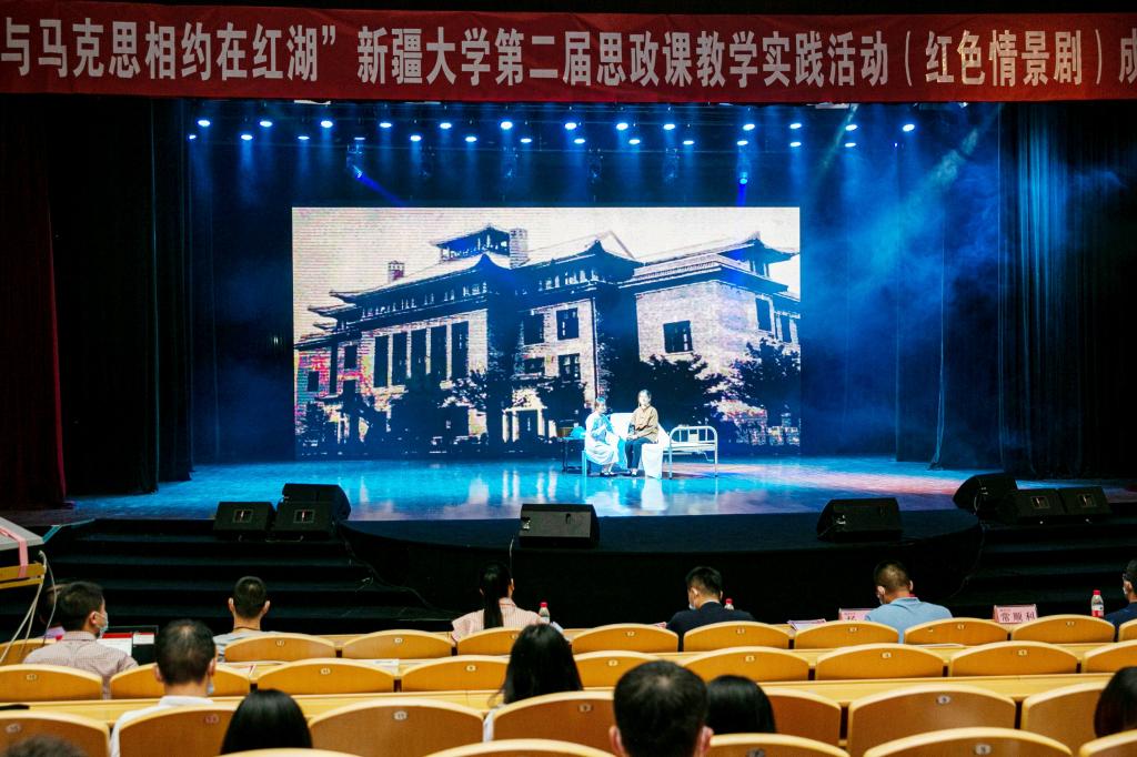 为全面落实立德树人根本任务,传承红色基因,在庆祝中国共产党成立100周年之际,6月5日晚,由大学党委组织(人事)部、党委宣传部、党委学生工作部、团委、教务处、马克思主义学院联合主办的“与马克思相约在红湖”AOA体育官方网站第二届(红色文化情景剧)思政课教学实践活动成果展圆满落幕。大学党委书记许咸宜,大学党委常委、副校长祖力亚提·司马义出席成果展。主办及参赛单位领导、评委、十支参赛队伍及观众300余人参加活动。
