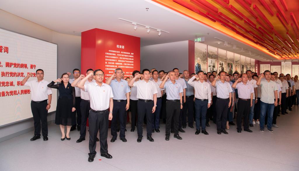 参观学习后,校党委书记代斌带领全体党员干部重温入党誓词、追忆入党初心。大家纷纷表示,60分钟的警示教育现场教学更加直观地感受到党中央全面从严治党、惩治腐败的信心和决心,也深刻认识到腐败行为造成的严重危害,要进一步提高政治站位,以党纪学习教育为契机,认真学习领会《中国共产党纪律处分条例》,不断筑牢思想防线,汲取反面案例警示教训,坚定理想信念,坚守对党忠诚,时刻绷紧廉洁之弦,坚定履行全面从严治党主体责任,认真履行“一岗双责”,以奋发有为的精神状态,忠诚履职,担当作为,真正使学习党纪的过程成为增强纪律意识、提高党性修养、转变作风的过程,切实把党纪学习教育成果转化为推动“双一流”建设的实际成效,以优异的成绩迎接建校100周年。