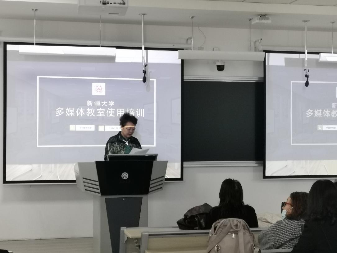 培训会上,教务处处长贾丽霞对任课教师的积极参与表示感谢,并强调了此次培训的重要性。培训分为理论讲解和实操练习两个环节。理论讲解环节中设备方技术人员通过视频教程和现场展示等方式向老师们详细介绍了不同类型多媒体教室的区别与使用方法。实操练习环节中任课教师前往不同教室在专业人员的指导下亲自操作,进一步熟练多媒体设备的使用。